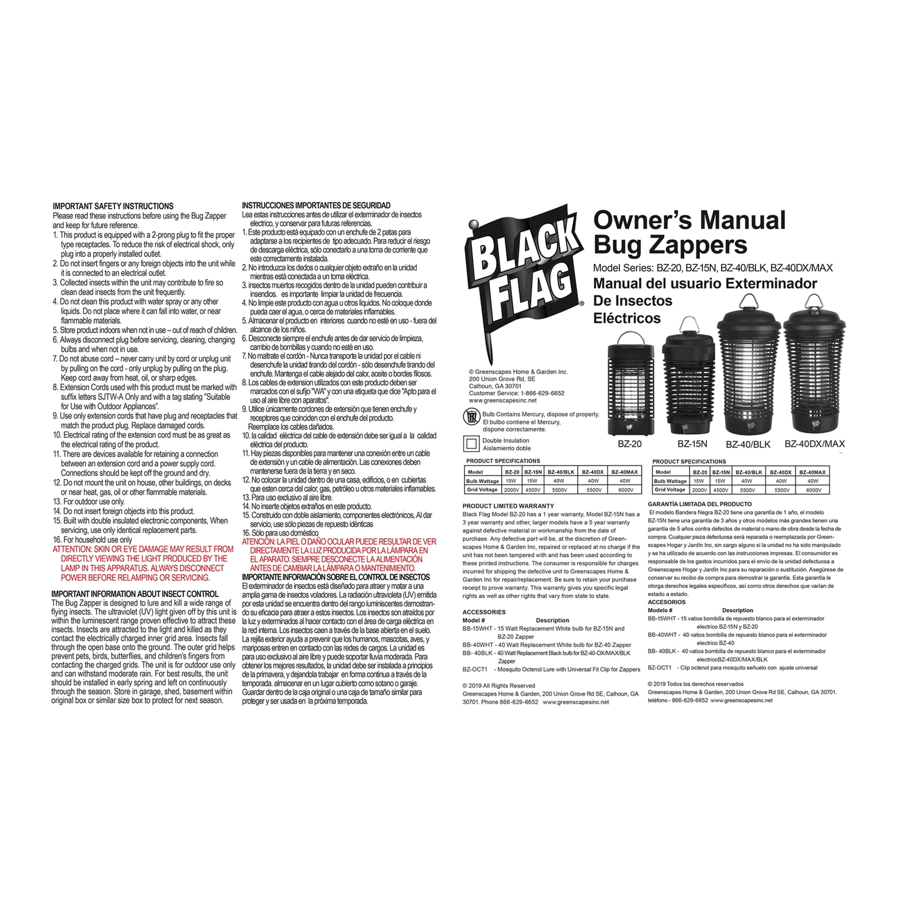 Black Flag 5500 Volt Deluxe 40 Watt Electronic Insect Killer Bug Zapper 1 5 Acre Coverage Black Walmart Com